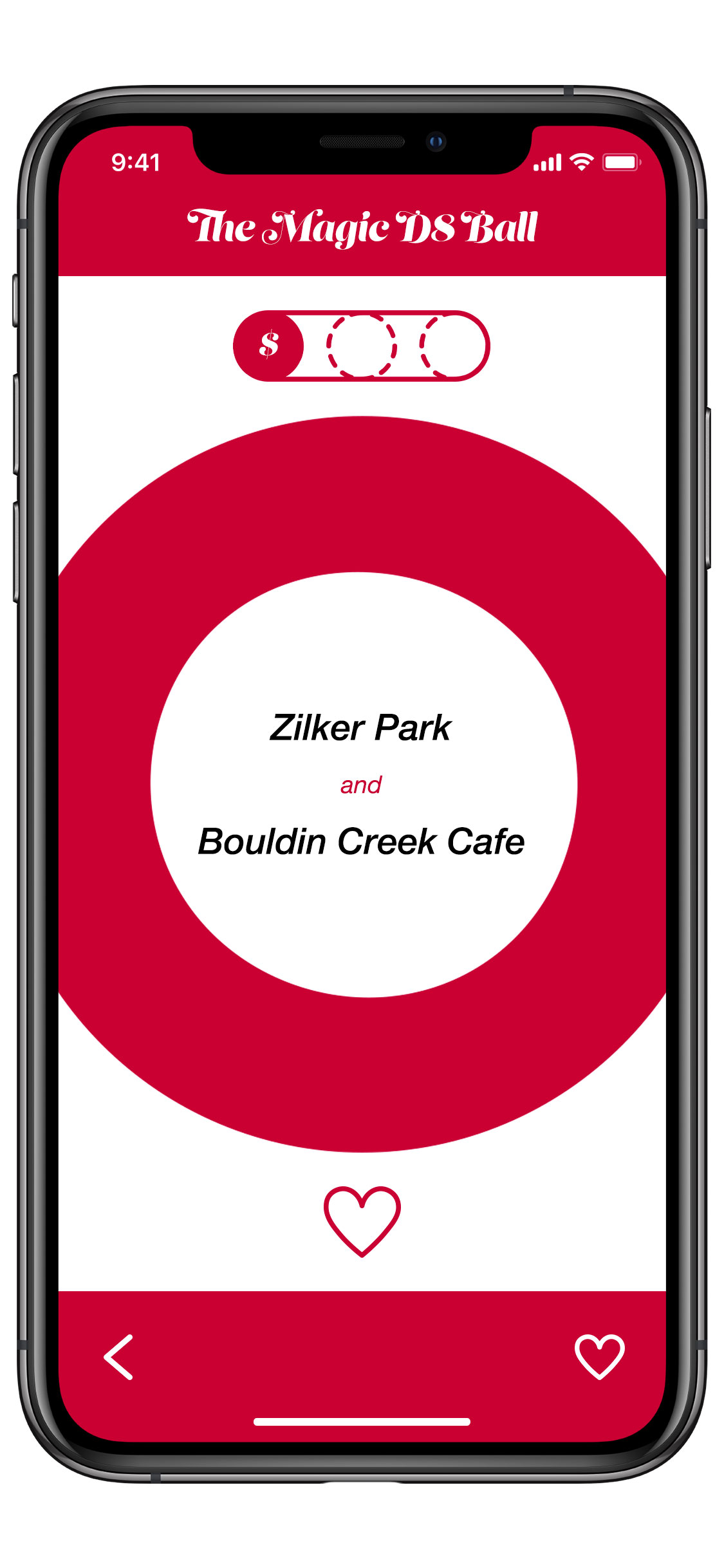 The Magic D8 Ball is an activity generating app for unique date suggestions. Tell the D8 Ball how far you’re willing to travel and what your price range is, and it suggests a pairing of a restaurant and nearby activity.
